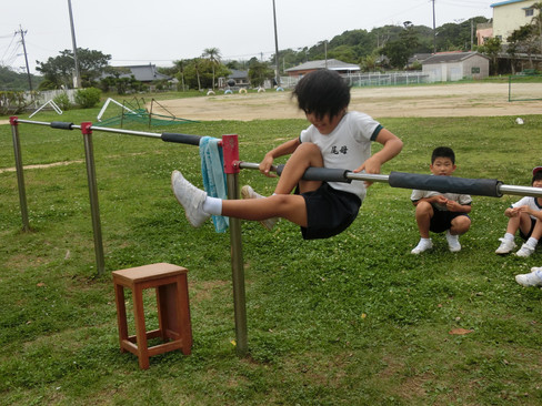 4・5年生が足かけ回りやかかえこみ回りを習得していく姿を見て,2年生も見よう見まねで取り組むうちに,足かけ回りができるようになりました。その姿を見て,「自分にもできる。」とやる気スイッチを入れた同級の2年生。